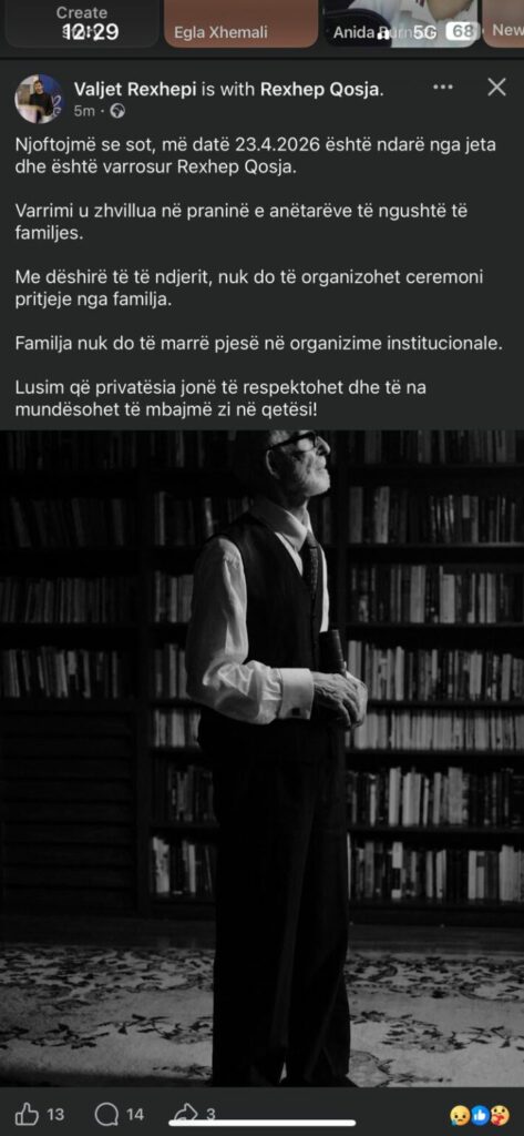 Ballina Shqiperia ime Ndërron jetë në moshën 89-vjeçare, akademiku Rexhep Qosja Ndërron jetë në moshën 89-vjeçare, akademiku Rexhep Qosja ARTIKUJ TË NGJASHËMMË SHUMË NGA AUTORI Shqiperia ime 28- vjeçarja e huaj gjendjet e pajetë në një apartament me qira ditore Shqiperia ime Ndryshime në Policinë e Fierit, emërohen drejtori i ri dhe shefi i komisariatit Shqiperia ime U v*a me armë zjarri në Suedi ,trupi i 21-vjeçarit shqiptar nga Fieri, mbërrin në atdhe - Advertisement -