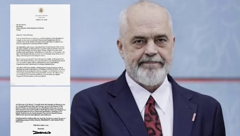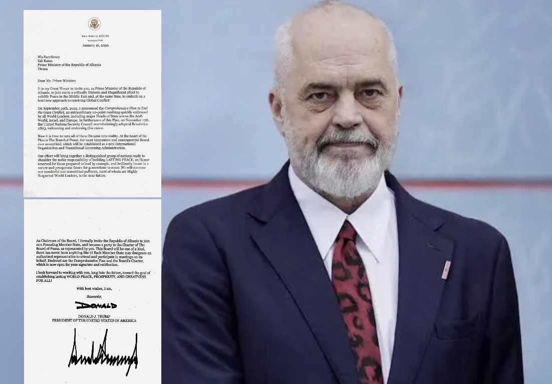 Kryeministri Edi Rama ka publikuar letrën e presidentit amerikan Donald Trump,  për të përfaqësuar Shqipërinë në Bordin e Paqes.