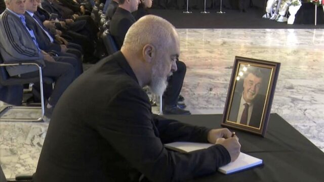 Në hollin e Pallatit të Kongreseve në Tiranë, u mbajtën sot homazhet në nderim të gjyqtarit Astrit Kalaja, i cili humbi jetën dy ditë më parë pas një sulmi me armë zjarri brenda ambienteve të Gjykatës së Apelit, teksa ndodhej në krye të detyrës.I pranishëm ishte edhe kryeministri Edi Rama, i cili la edhe një mesazh në librin e ngushëllimeve për gjyqtarin e ndjerë.